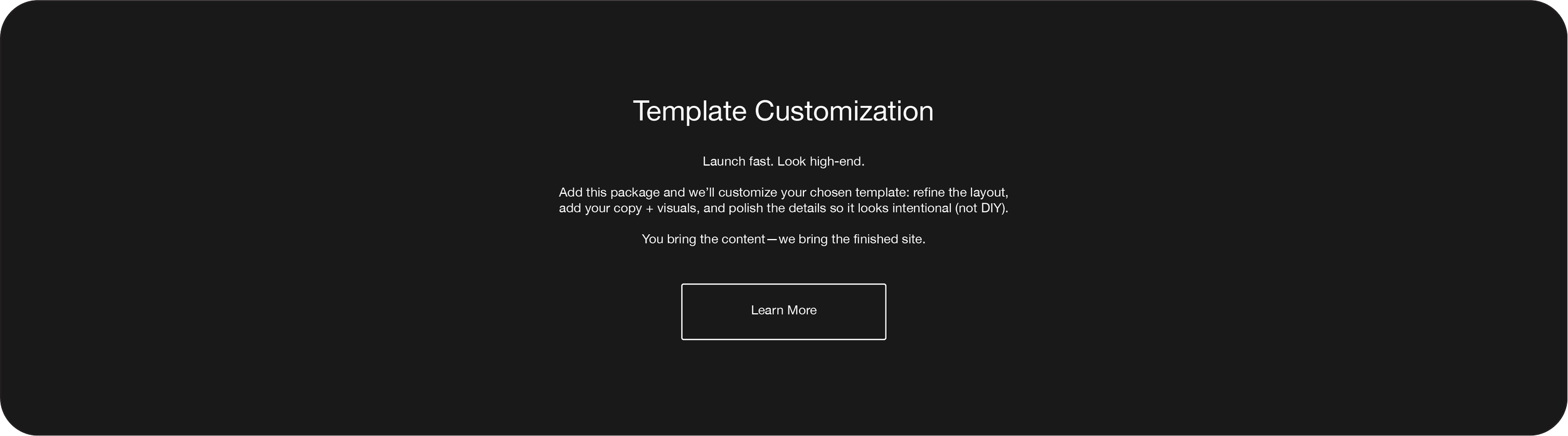 Done-for-you customization + uploads — meaning template customization, content population, and SEO aren’t included with the template purchase.